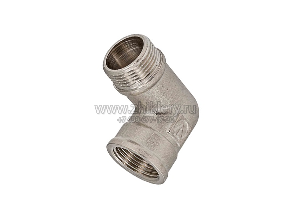 Фитинг для резьбового соединения под 90 °. На одном конце наружная, на другом - внутренняя резьба 1/2 дюйма.