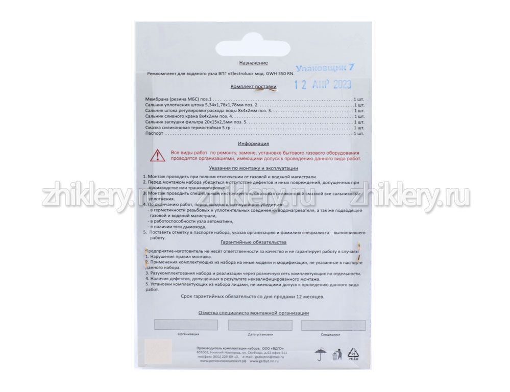 Мембрана (резина МБС) 51 мм поз. 1 1 шт. Сальник уплотнения штока 5,34 х 1,78 х 1,78 мм поз. 2 1 шт. Сальник штока регулировки расхода воды 8 х 4 х 2 мм поз. 3 1 шт. Сальник сливного крана 8 х 4 х 2 мм поз. 4 1 шт. Сальник заглушки фильтра 20 х 15 х 2,5 мм поз. 5 1 шт. Смазка силиконова термостойкая 5 гр. 1 шт. Паспорт Подходит для следующих моделей: