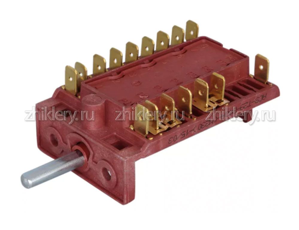Для духовки электроплиты. 10 позиций переключения - 9 рабочих позиций и 1 нулевая.