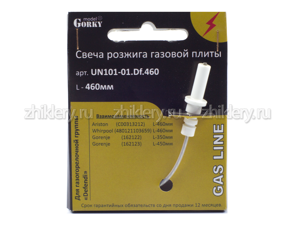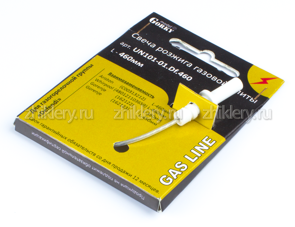 Свеча разжига (электрод, разрядник) UN101-01.Df.460 используется в плитах и газовых варочных поверхностях Whirlpool, Gorenje, Hotpoint-Ariston с установленными горелками марки "Defendi".