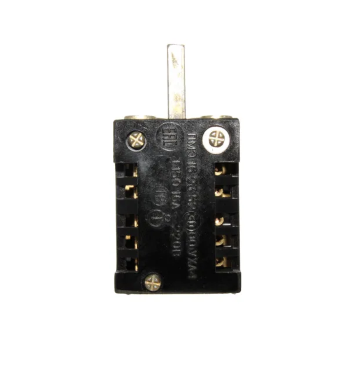 • Размеры: Длина позиционного вала составляет 25 мм, диаметр — 6 мм, а общая длина переключателя с валом — 80 мм.